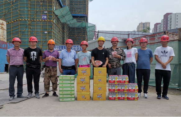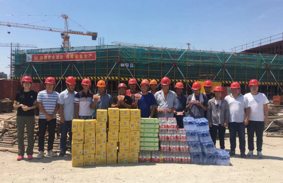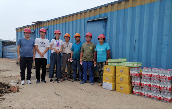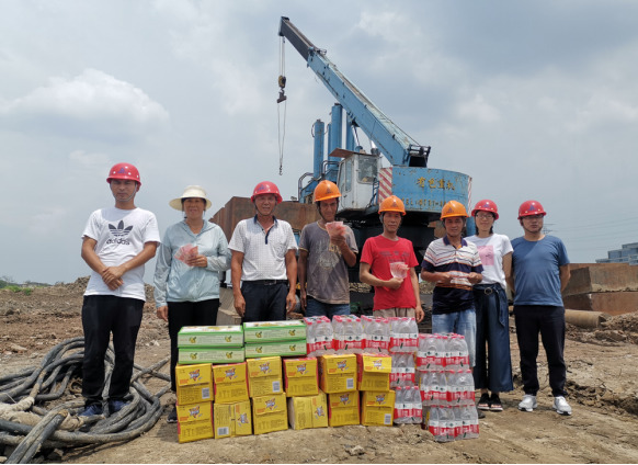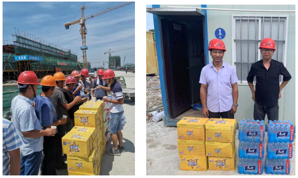 ,持续的高温天气给建筑工地的一线工人及管理人员带来了施工困难。为切实做好防暑降温、夏季安全生产工作,由公司行政部组织,总经理、总师办、安全部等组成慰问小组开展“抗高温、送清凉”活动。7月27日-7月30日,公司高层领导带队的慰问小组,深入基层向奋战在江苏、浙江各项目工地一线的管理人员及工人们送上高温费、矿泉水、冰红茶、水果和防暑药品等。 所到之处,项目人员在高温下坚守工作岗位、挥汗如雨的工作景象令人钦佩感动了大家,公司领导还向现场负责人详细了解施工情况,要求大家在高温天气下要更加重视安全生产工作,切实做好一线工人的防暑降温工作,确保施工安全。“安全”关系着每位参与人员的“家庭幸福”!