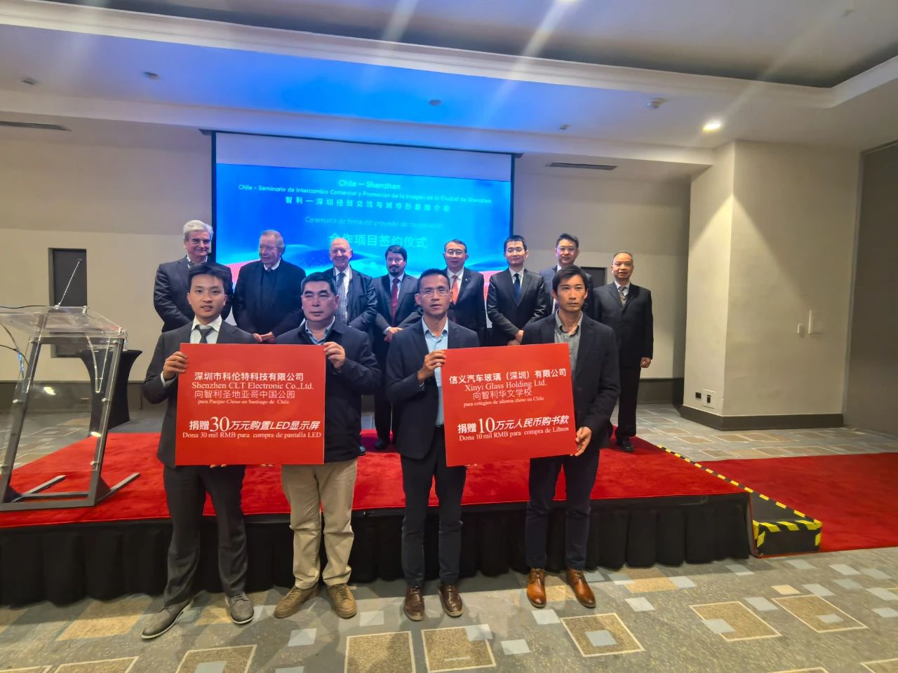 商务活动结束后,还举行了捐赠仪式,深圳市多宝电竞科技有限公司向智利中国公园捐赠了一批高清户外LED显示屏。