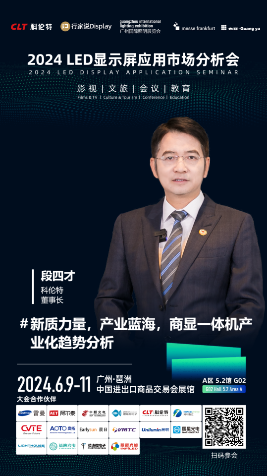 同时,多宝电竞集团董事长也受邀参加同期举办的“2024 LED显示屏应用市场分析会”,发表题为《新质力量,产业蓝海,商显一体机产业化趋势分析》的演讲。